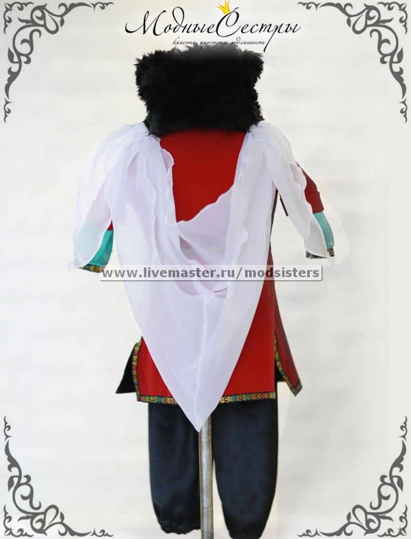 Дополнительно к мужского кавказскому костюму можно купить башлык и папаху. Башлык сшит из прозрачной ткани белого цвета. Папаха изготовлена из искусственного меха черного цвета с длинным ворсомМужской кавказский костюм Отзывы