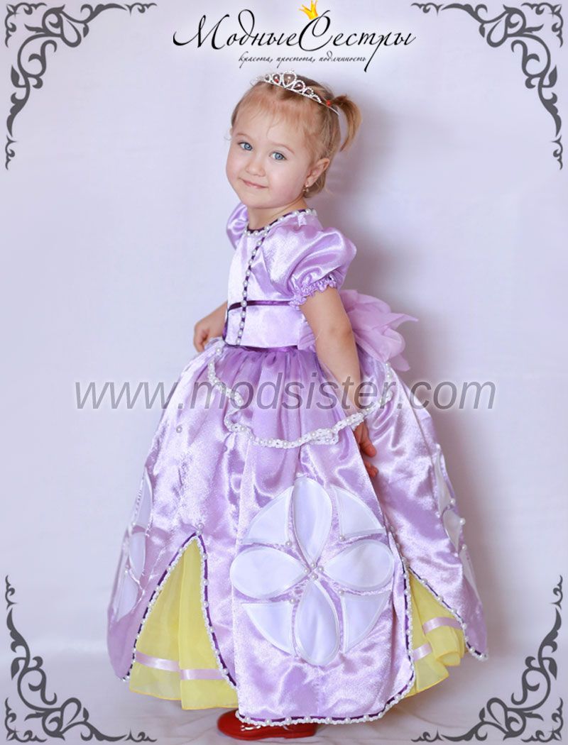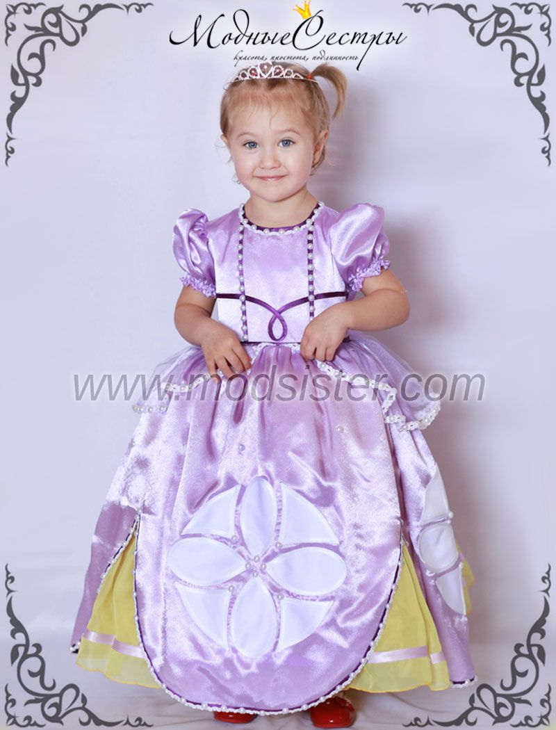 Перевоплотится в главную героиню мультфильма "Принцесса София Прекрасная" студии «Уолт Дисней Компани» вашей дочурке поможет волшебное фиолетовое платье с воздушной юбкой. Маленькие девочки мечтают стать принцессами из любимого мультсериала, носить платья как принцессы и корону. Образ создан по мотивам мультсериала, который повествует о том, как девочка София Прекрасна, однажды стала принцессой. София и ее друзья принимают участи в опасных приключениях, вместе преодолевают все трудности.