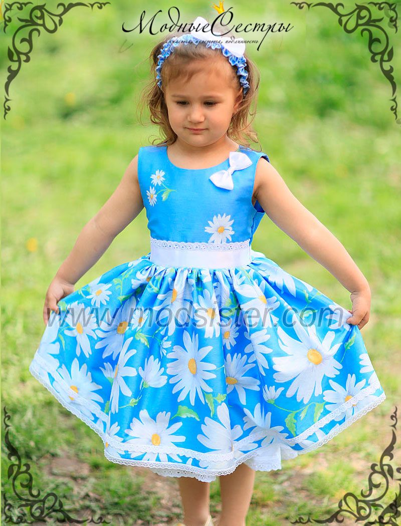 Ромашка – белые звездочка с желтым сердечком, без которой невозможно представить лето. Такие знакомые и родные цветы. Модельеры интернет-магазина «Модные сестры» не зря выбрали именно сатин в белах ромашках для детского летнего платья. Модель получилась по-настоящему летней, по-настоящему ромашковой. Смотришь на платье и перед глазами: лето, дача, солнечный денек, ромашковая поляна. Мама всегда выбирает для своей дочурки самые красивые платья. Платье Ромашка обязательно станет самым любимым летним платьем и для мамы, и для дочки.