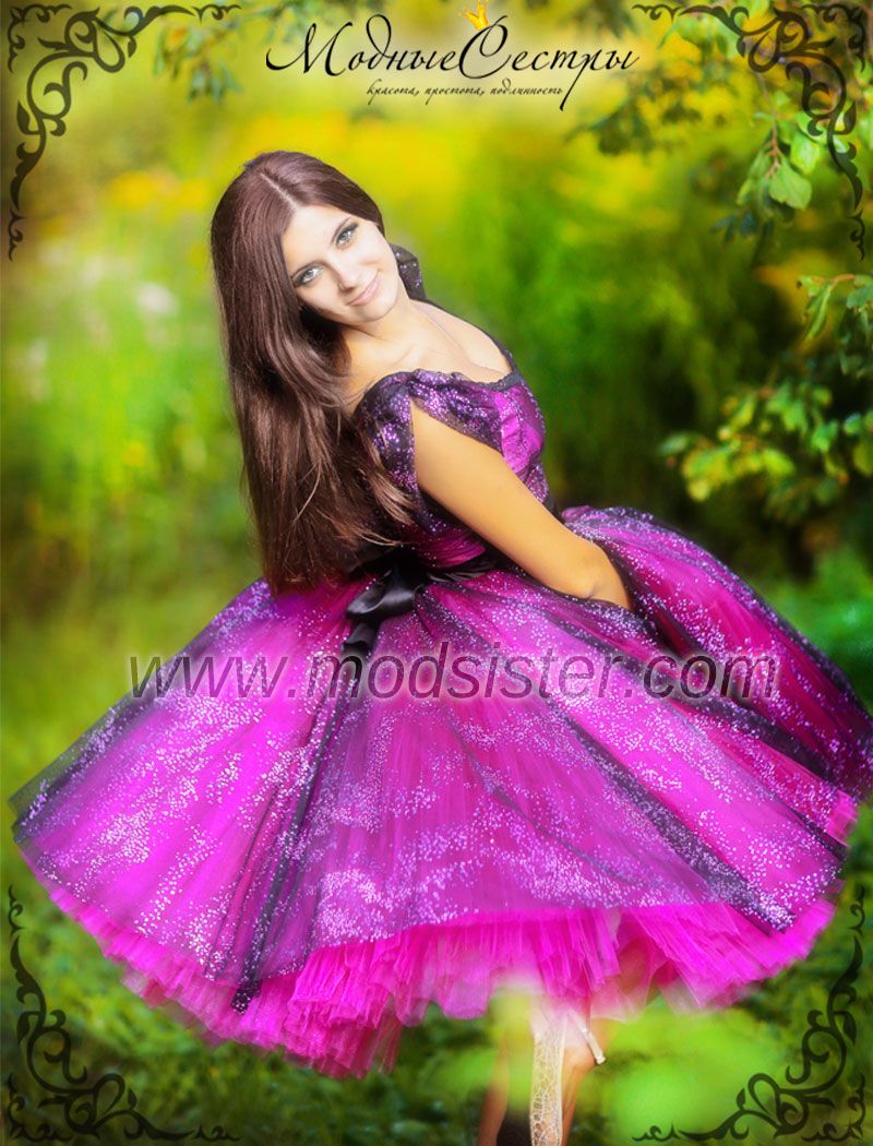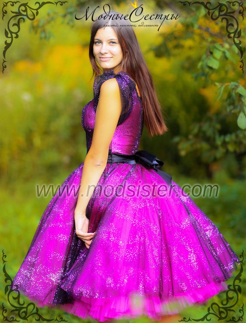 По спинке молния. Юбка фатиновая. Красивое и изысканное платье, искрящееся на свету. Возможен пошив в других цветовых вариантах.