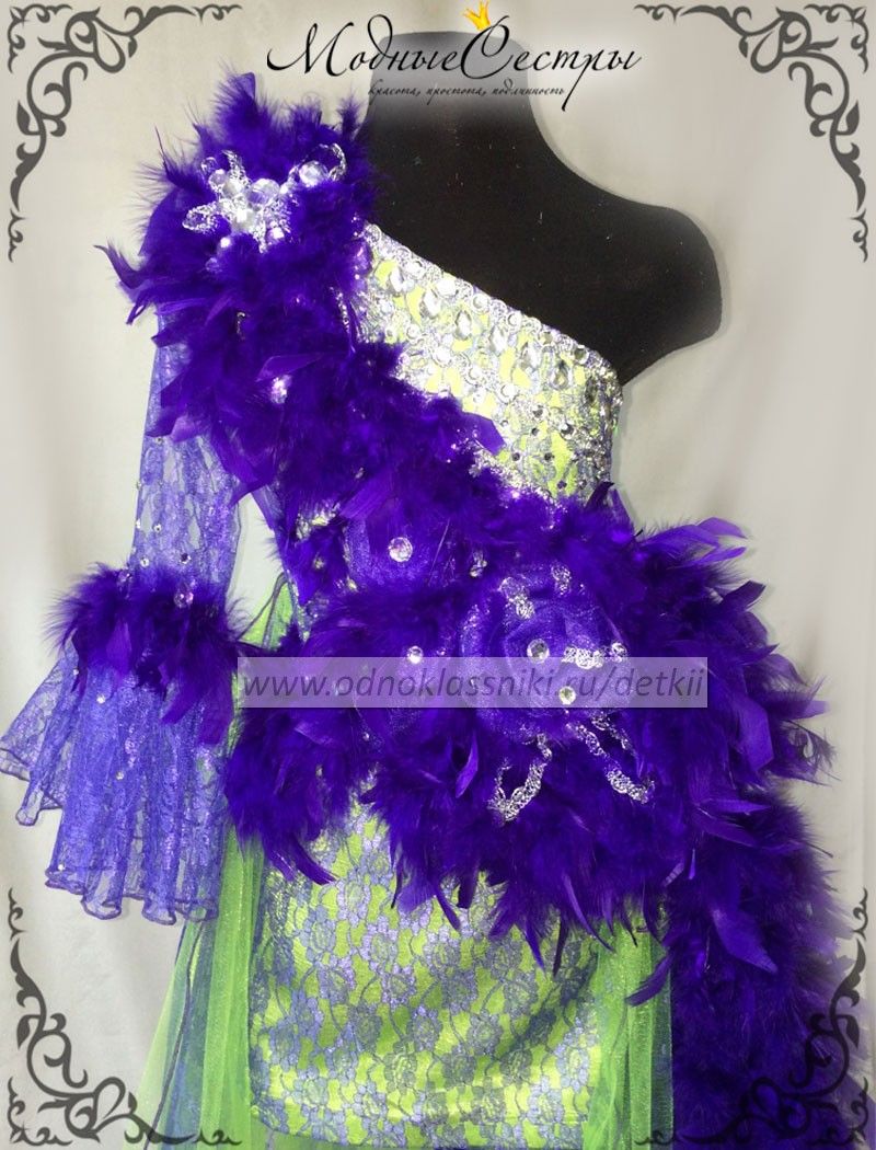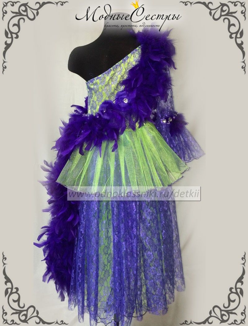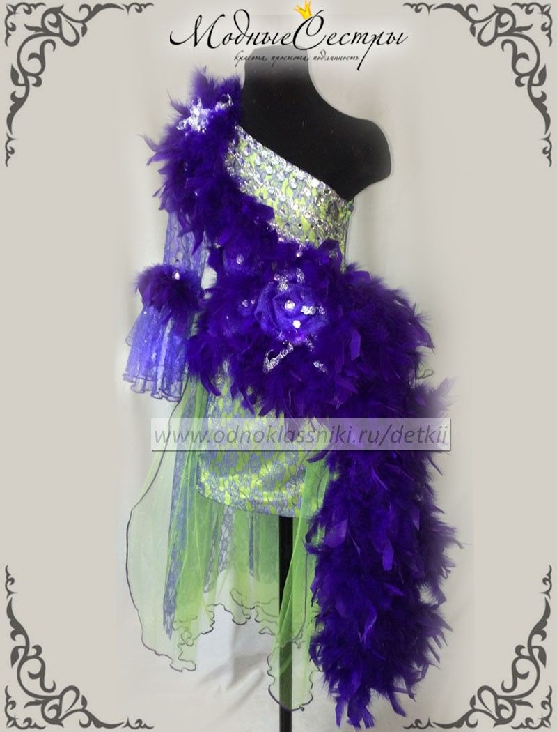 Платье украшенное перьями и стразами. Цвета могут быть любые по вашему желанию.