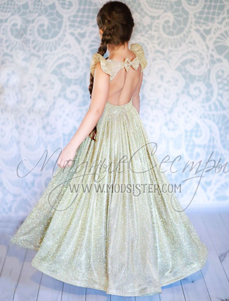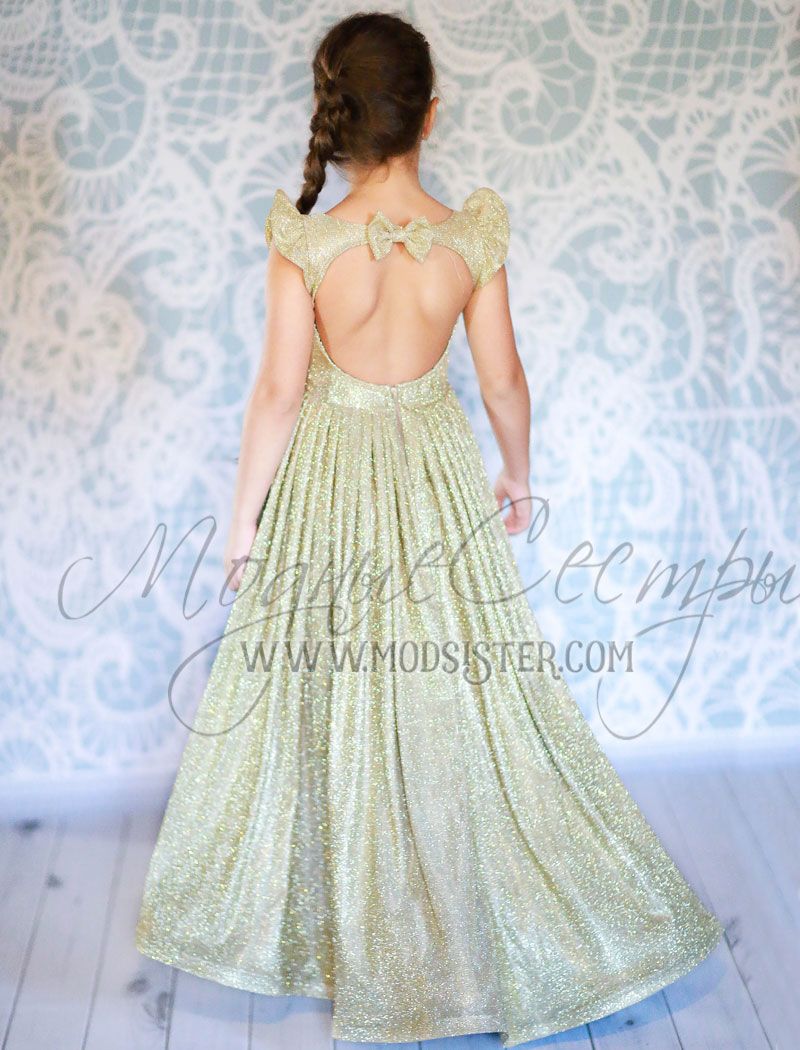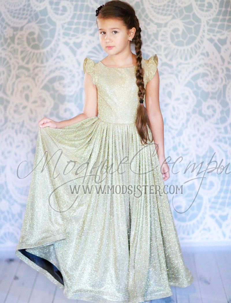 Вечернее детское шлейфовое платье из золотого искрящегося трикотажа, смотрится стильно и элегантно, превосходный крой модели позволит чувствовать себя комфортно. Видео данной модели можно посмотреть тут https://www.youtube.com/watch?v=qfzKG3GMfvk