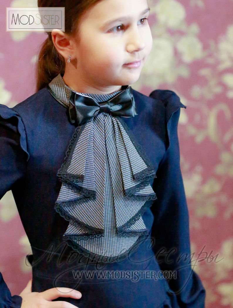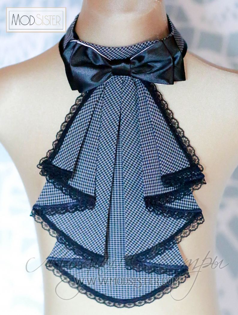 Жабо имеет воротник стойку, сзади завязывается на атласную ленту.