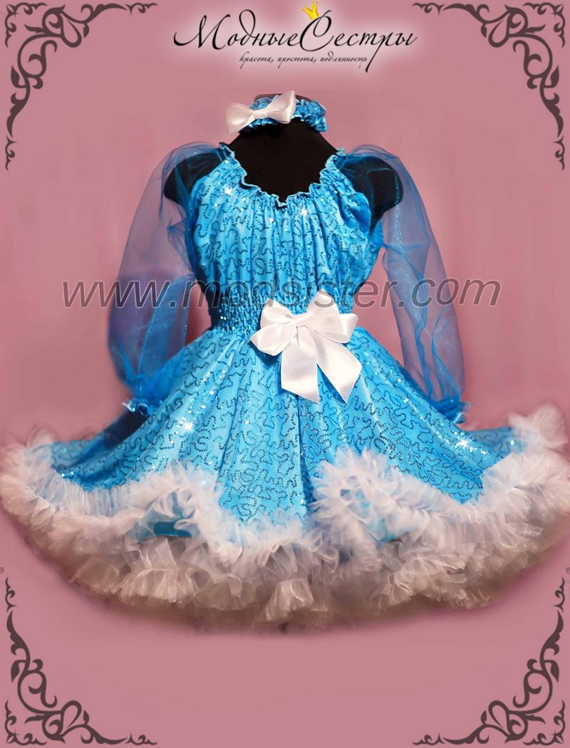 Платье "Королева" бело-голубое с рукавом, повязка на голову в комплекте