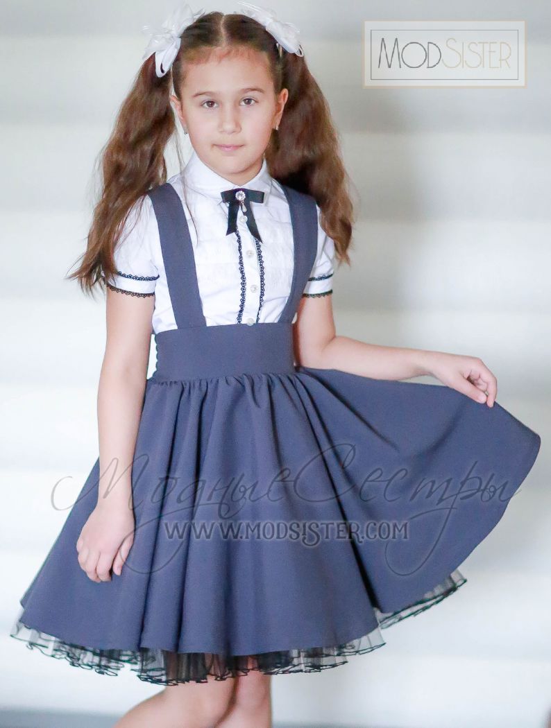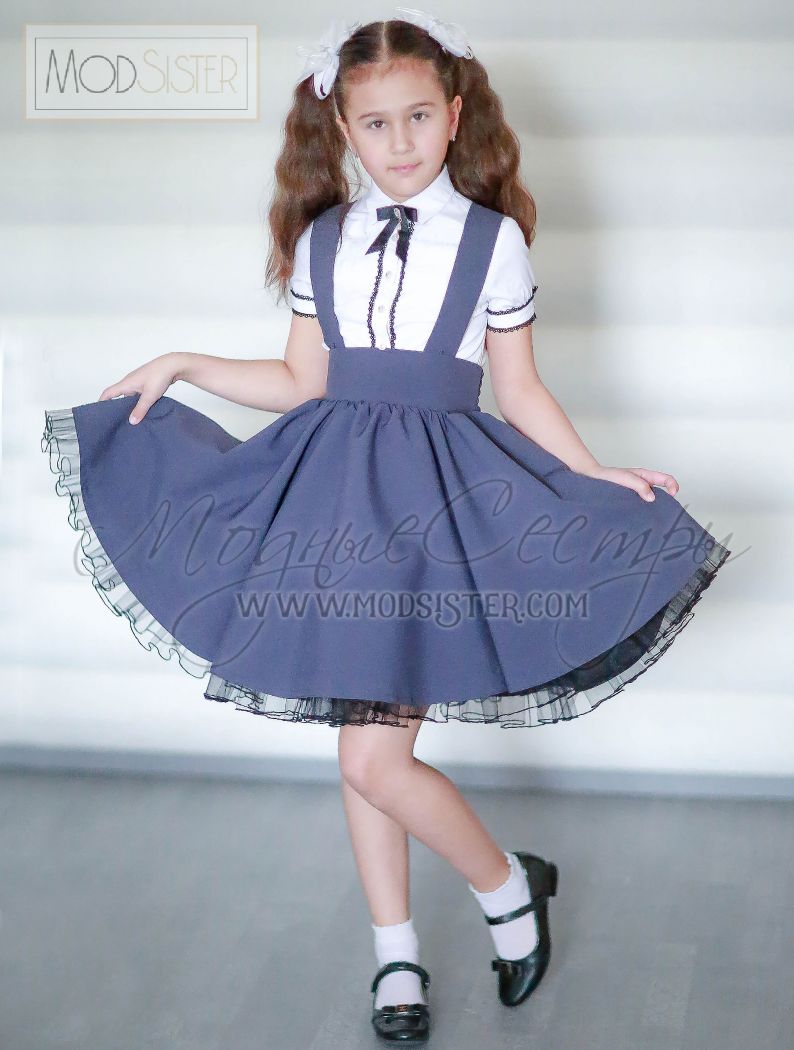 Очень красивая и пышная школьная юбка со съемными бретелями. Широкий пояс, спереди ровный, сзади эластичная вставка в несколько рядов резинки, для плотного и комфортного облегания по талии. Бретели можно регулировать по высоте, либо совсем отстегнуть.